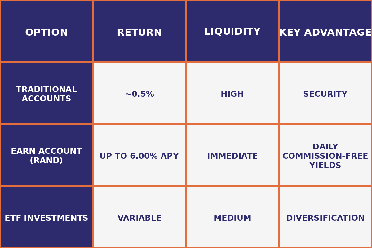Rand is a perfect option for the liquid portion of your portfolio. You can use it alongside ETFs, index funds, or long-term investments to create a smart mix of returns and availability.