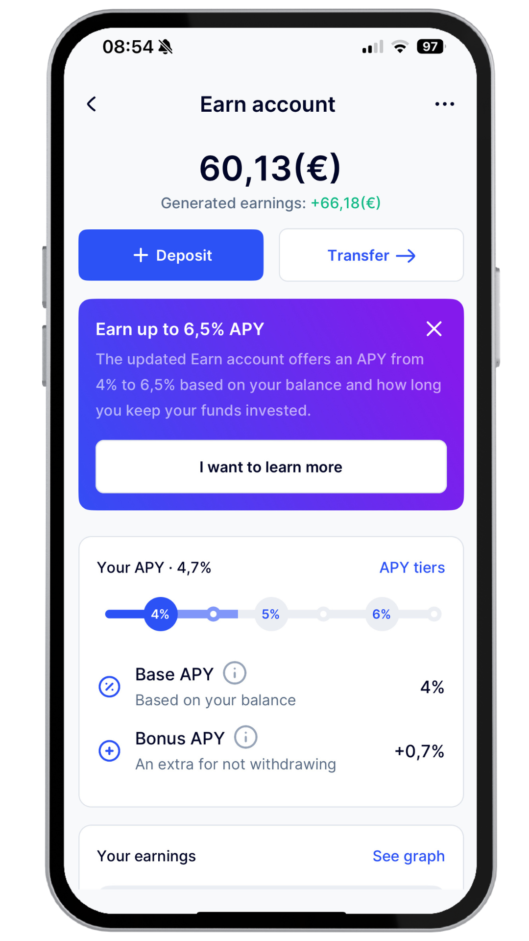 The Earn account is an investment product; your capital is at risk and may not be suitable for retail investors. Consider your knowledge and experience before making investment decisions.