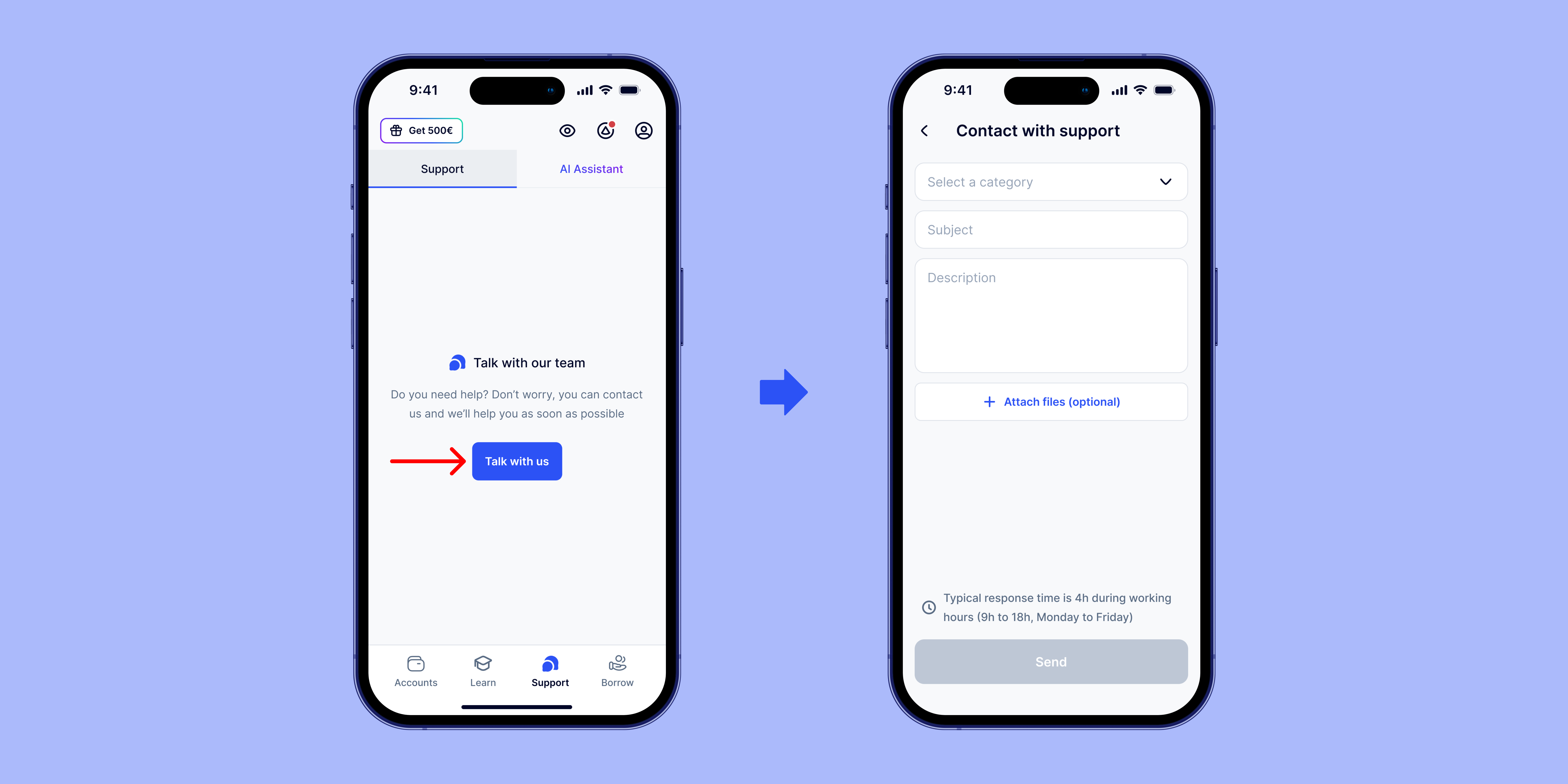 Now you can open a ticket to communicate with our Customer Care team directly from the app, without needing to visit our website or search for hidden options.