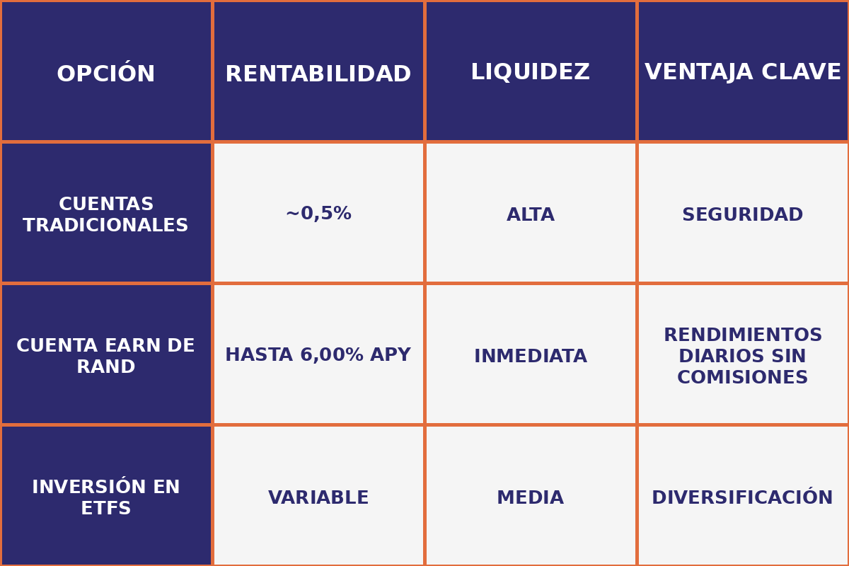 - Puedes mantener una parte líquida en cuentas como Rand para una rentabilidad anual, lineal y segura.